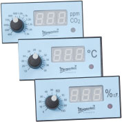 Elektronische Regler für Temperatur, Luftfeuchte und CO2-Gehalt zeigen die Messwerte über separate dreistellige LED-Anzeigen an und regeln exakt die eingestellten Sollwerte.